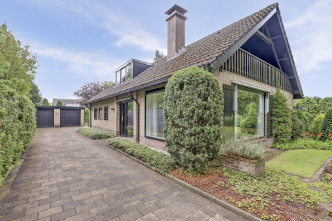 De royale, zonnige achtertuin (zuidoost) is vanuit de keuken bereikbaar. Hier is een groot terras met overkapping met links en rechts borders en aan de achterzijde van de tuin over de gehele breedte de houten berging en achterom.